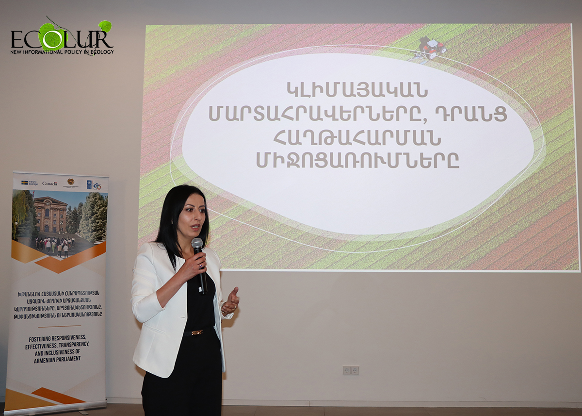 Hasmik Matsakyan, head of development programs at Pambak municipality, presented the community’s climate challenges and proposed measures to address them. She noted a shift in seasonal weather patterns and the overall climate profile.