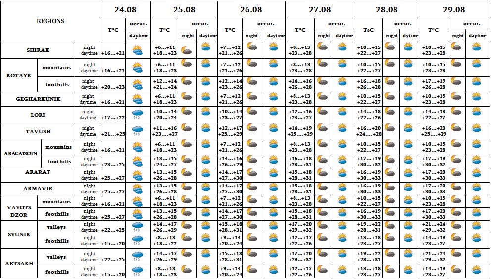In the daytime of August 25, on 26-30 no precipitation is predicted.