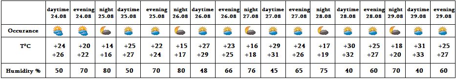 On August 25-30 the air temperature will gradually go up by 5-7 degree.