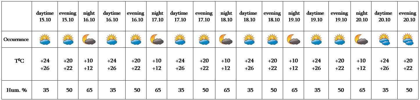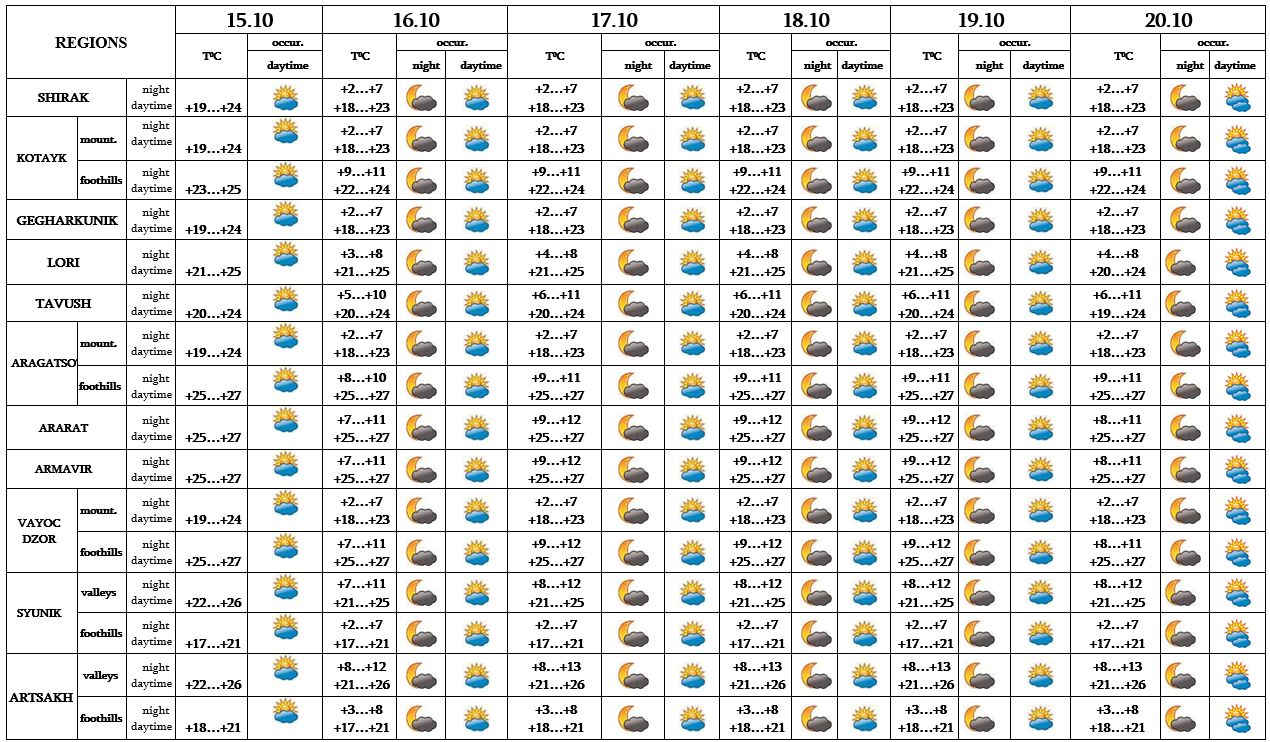 In the daytime of October 15, on 16-20 no precipitation is predicted.
