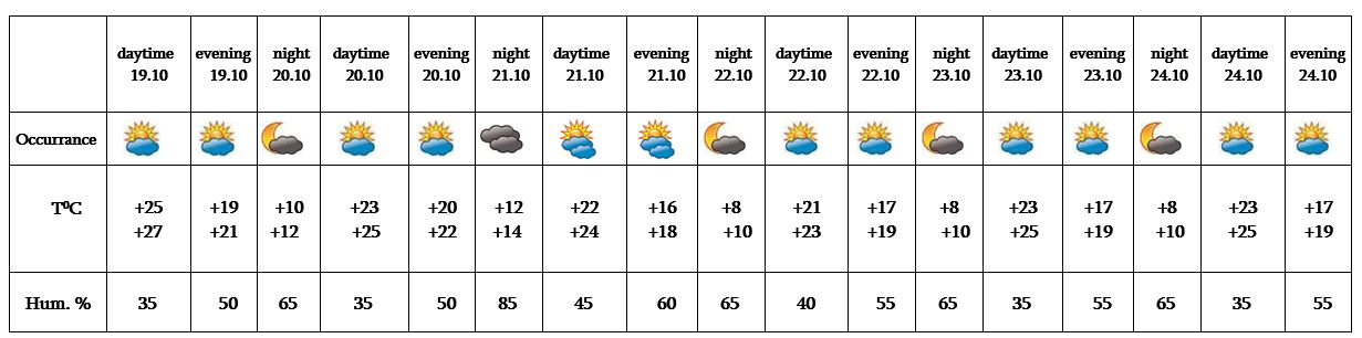 In the daytime of October 19, on 20-24 no precipitation is predicted.