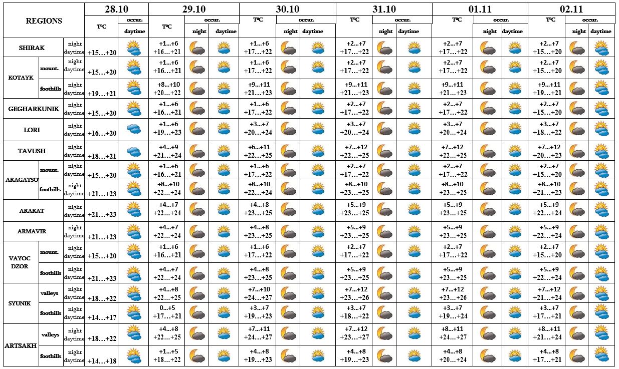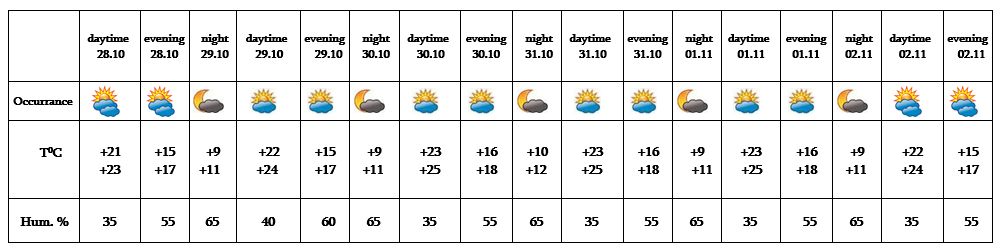 In the daytime of October 28, on 29-31, on November 1-2 no precipitation is predicted.