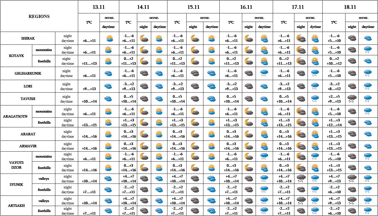 In the daytime of November 13, on 14-15 no precipitation is predicted, on 16-18 in separate regions rain is predicted.