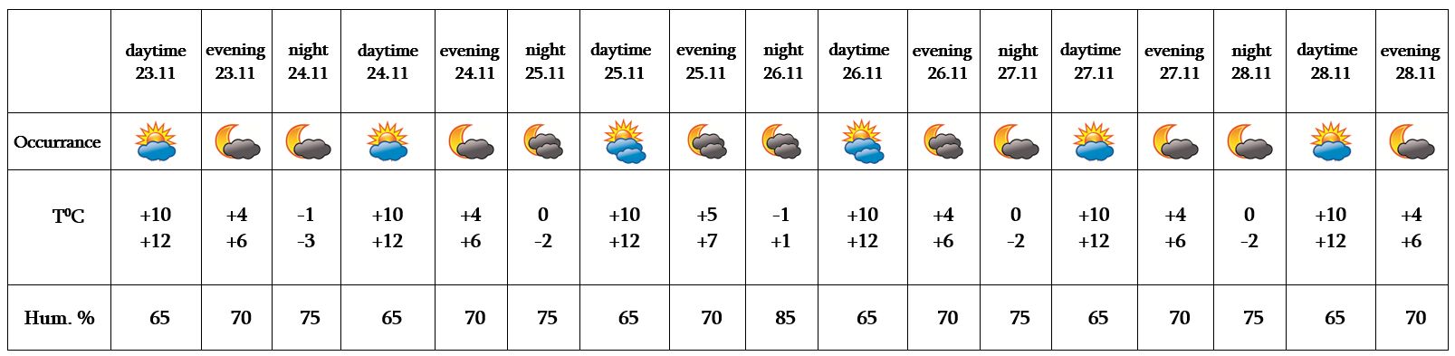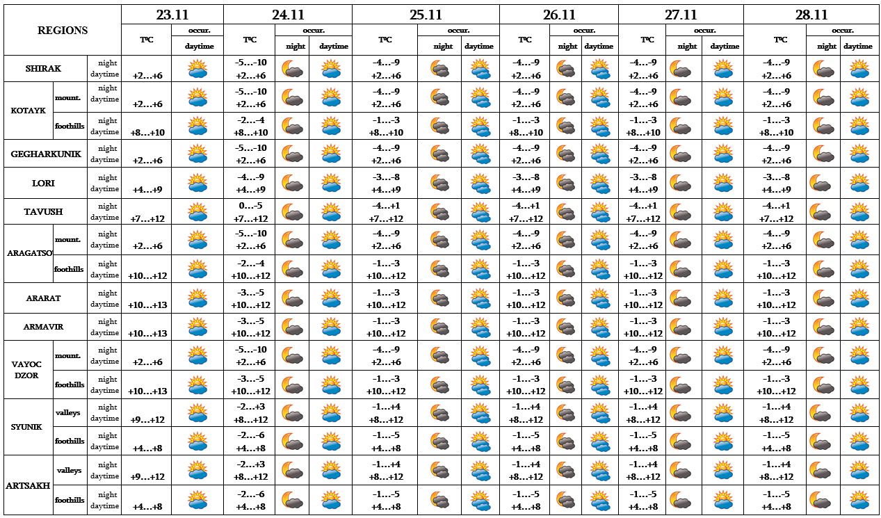 In the daytime of November 23, on 24-28 no precipitation is predicted.
