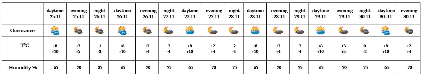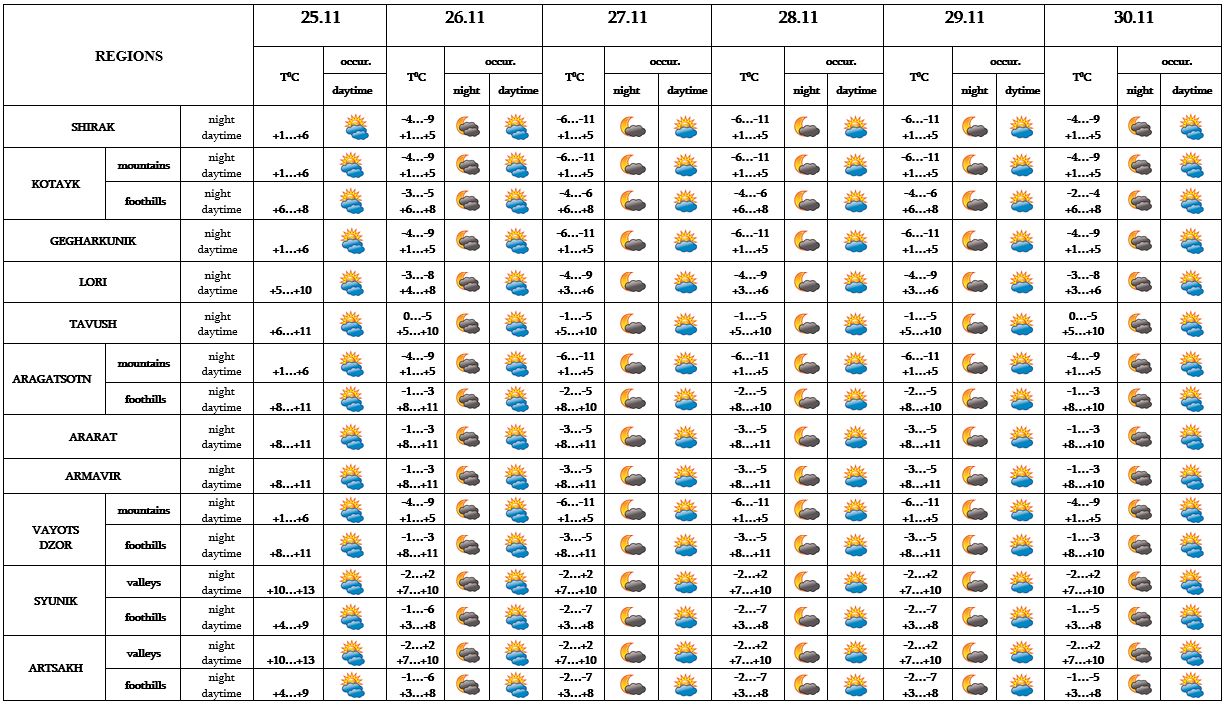 In the daytime of November 25, on 26-30 no precipitation is predicted.