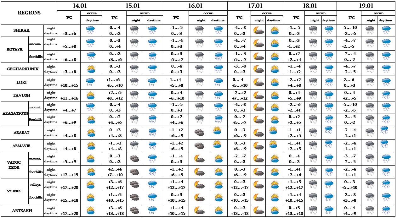 In the daytime of January 15 in Araratyan valley and in mountainous area the air temperature will gradually go up by 3-5 degrees.