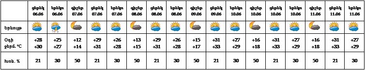 In the daytime of June 7, in the afternoon of 8-11 in separate places short-term rain with thunderstorm is predicted, in separate parts hail is possible.
