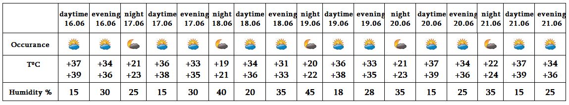 In the daytime of June 16, on 17-21 no precipitation is predicited, in the evening the wind speed may reach up to 18-20 m/s.