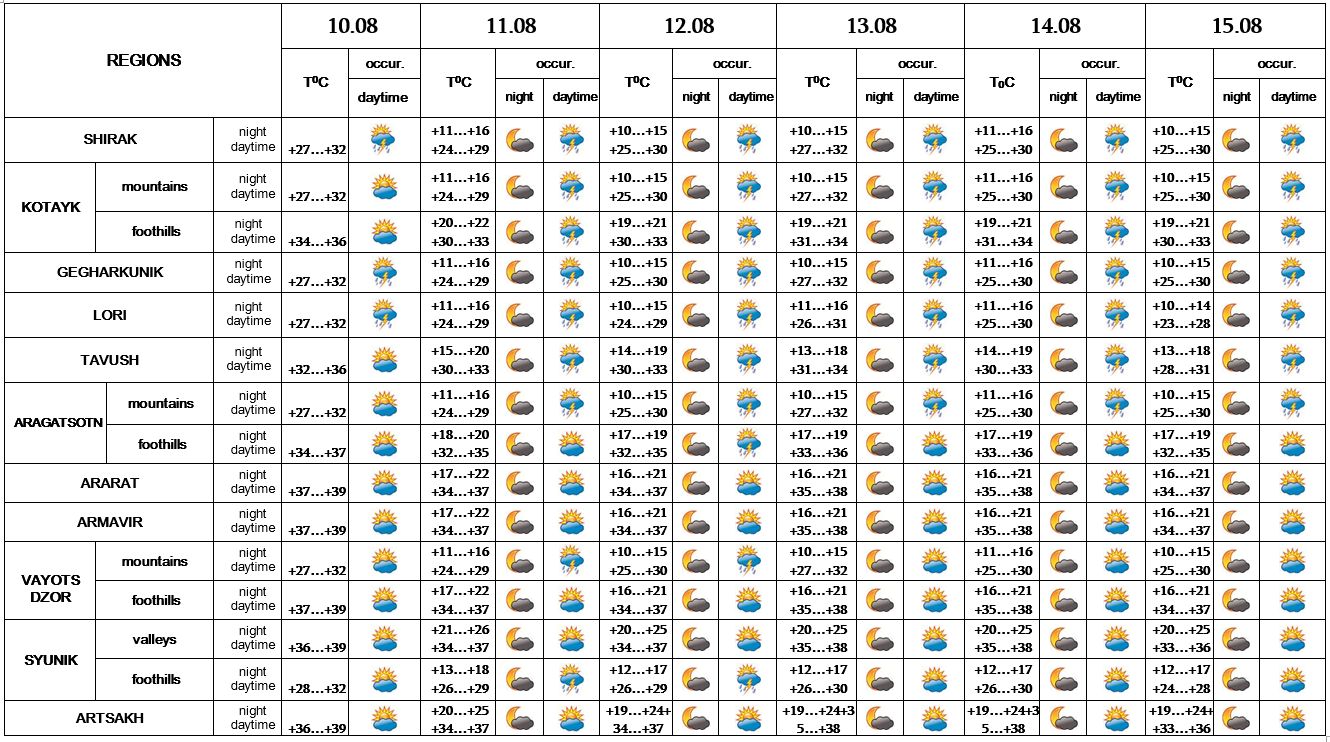 In the afternoon and at night of 10-15 in separate places short-trem rain with thunderstorm is predicted, in separate places hail is also possible.
