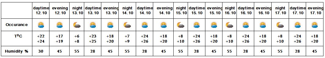 In the daytime of October 12, on 13-17 no precipitation is predicted.