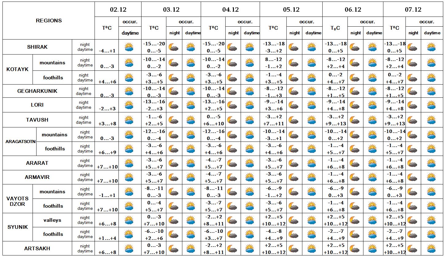 In the daytime of December 2, on 3-2 no precipitation is predicted, at night and in the daytime in the form of snow in mountainous regions and foothills, the roadways will be covered with black ice.