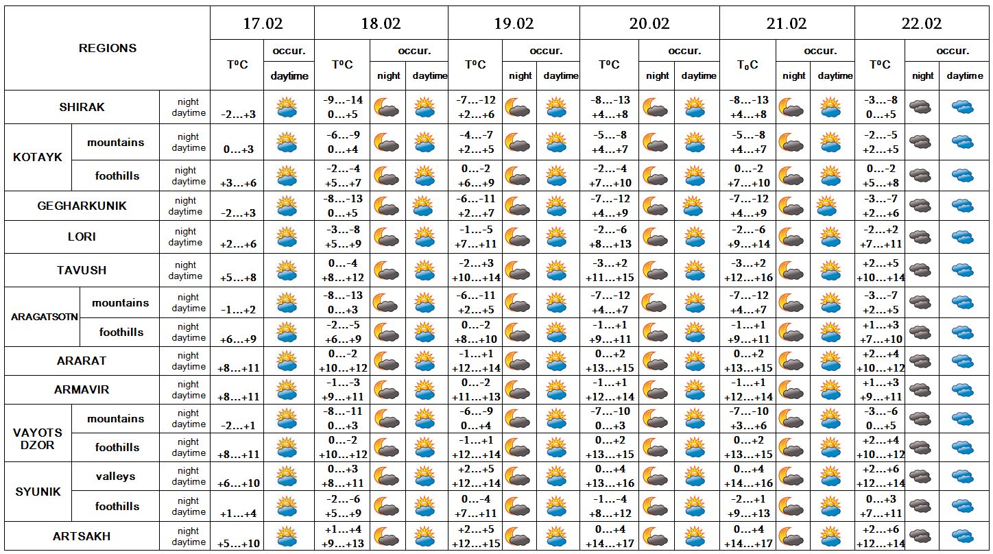 In the daytime of February 17, on 18-22 no precipitation is predicted.