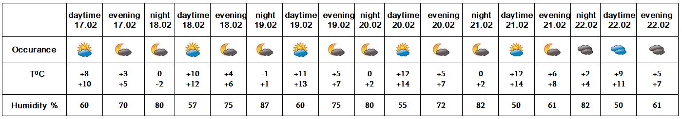 In the daytime of February 17, on 18-22 no precipitaiton is predicted.