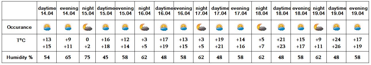 The air temperature on April 14-19 will gradually go up by 8-10 degrees.