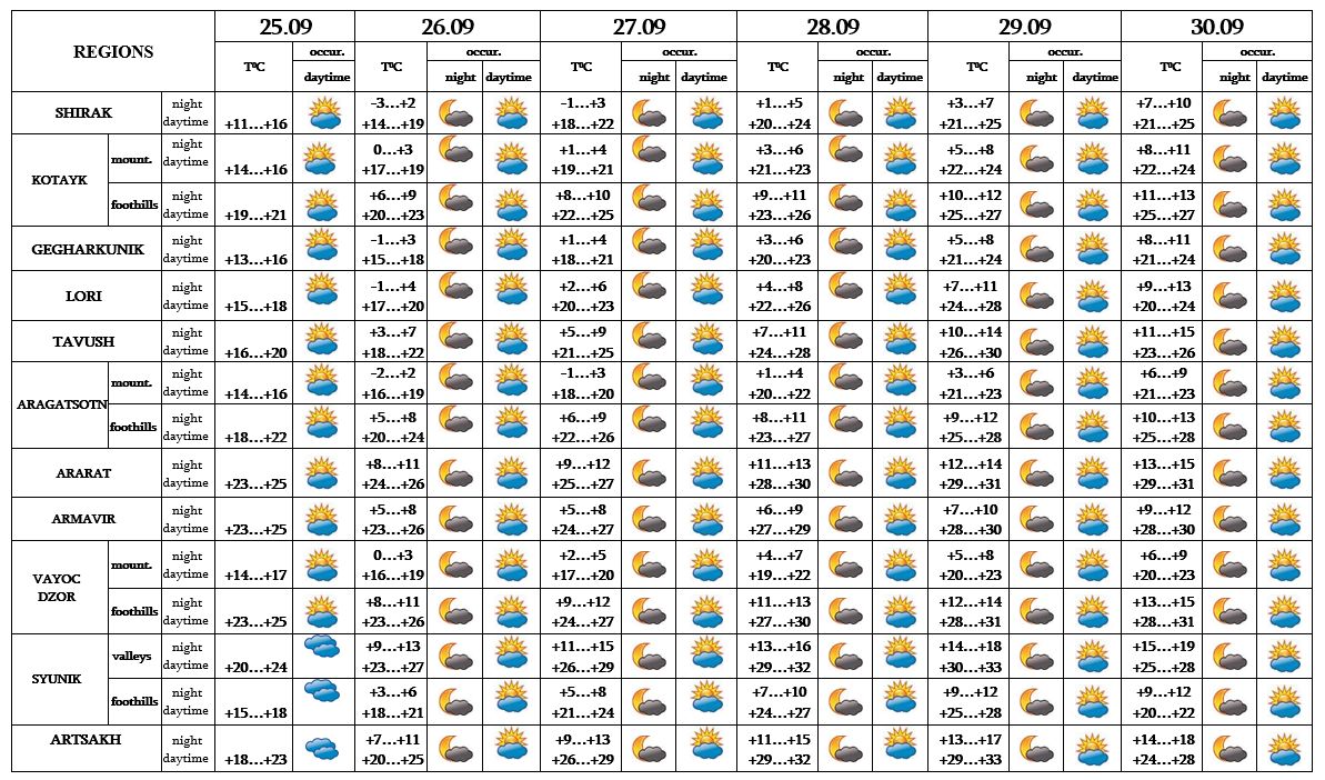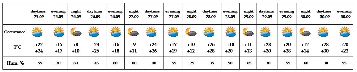 In the daytime of September 25, on 26-30 no precipitation is predicted.
