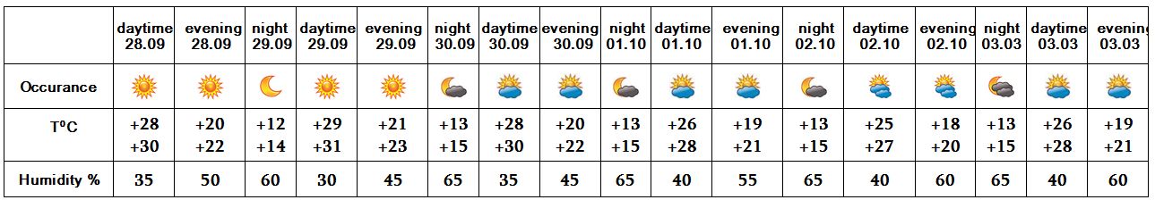 In the daytime of September 28, on 29-30, on October 1-3 no precipitation is predicted.