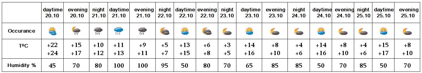 In the evening of October 20 short-term rain is possible. in separate parts of the city. On October 21 rain is predicted. On October 22-25 no precipitation is predicted.