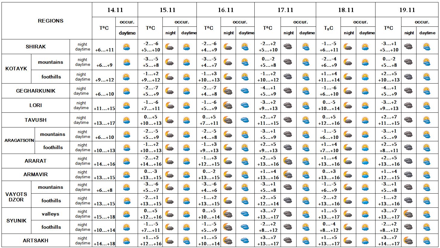 On November 15-16 the air temperature in Lori, Tavush province and Artsakh will go down by 2-4 degrees.