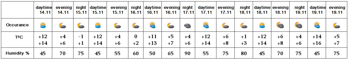 In the daytime of November 14, on 15-19 no precipitation is predicted.