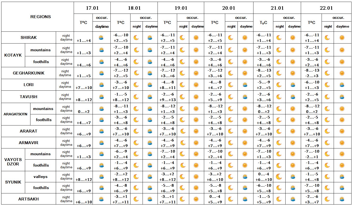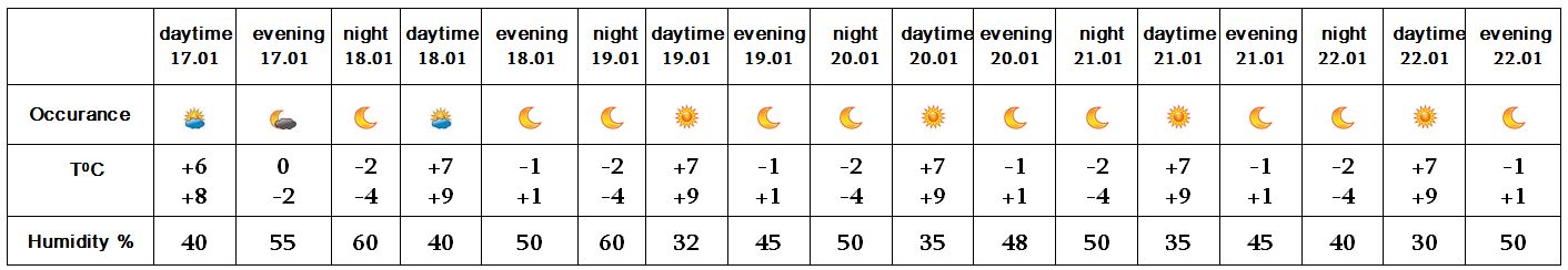 In the daytime of January 17, on 18-22 no precipitation is predicted.