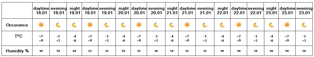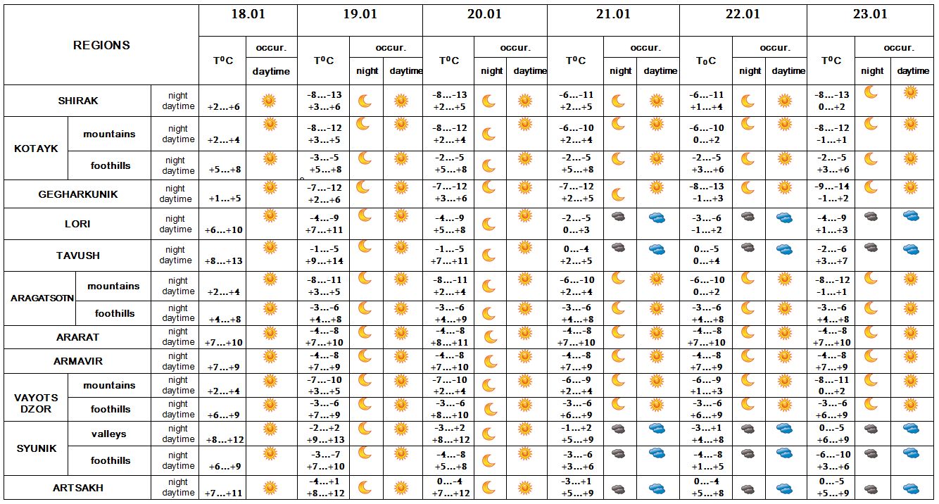 In the daytime of January 18, on 19-23 no precipitation is predicted.