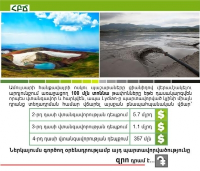 Այս ամենի դիմաց մենք միայն լսում ենք բանավոր խոստումներ. «...ոչինչ չի պատահի», կամ «սա անվտանգ տեխնոլոգիա է», կամ «մենք աշխատում ենք միջազգային ստանդարտներով» և այլն: Ո՞վ է երաշխավորելու այդ անվտանգությունը և ո՞վ է պարտավոր դրան հավատալու: Այս վիճակում ինչպե՞ս կարող են հանգիստ քնել այն մարդիկ, որոնց գլխին է կախված այս վտանգը: Տպավորությունն այնպիսին է, որ շահույթ ստանալու մոլուցքը կուրացրել է բոլորին, և հանուն դրա նրանք պատրաստ են «խաղալ» ցիանիդի հետ: Հենց ցիանիդի, քանի որ միայն նրա օգնությամբ է հնարավոր ավելի շատ փող աշխատել:
