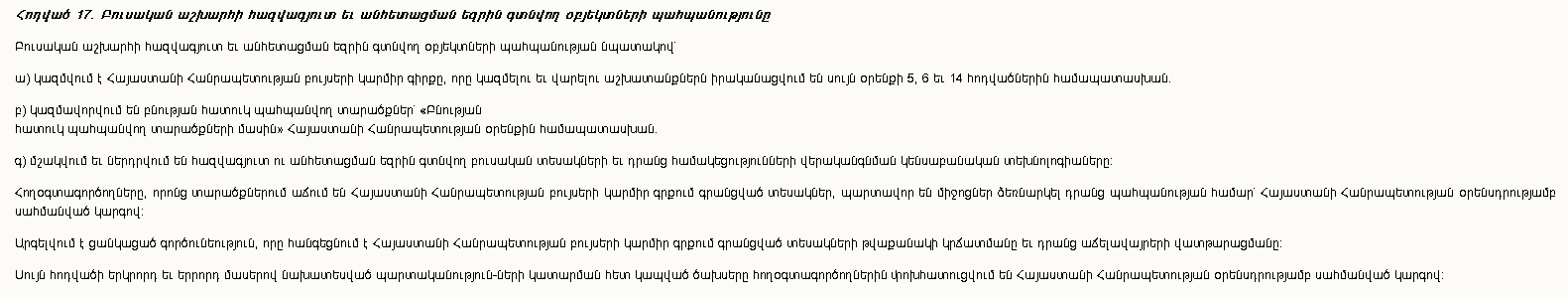«Բուսական աշխարհի մասին» ՀՀ օրենքի 17-րդ հոդված: