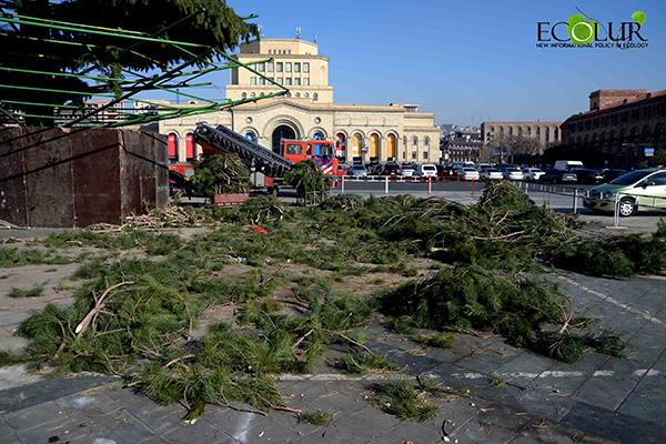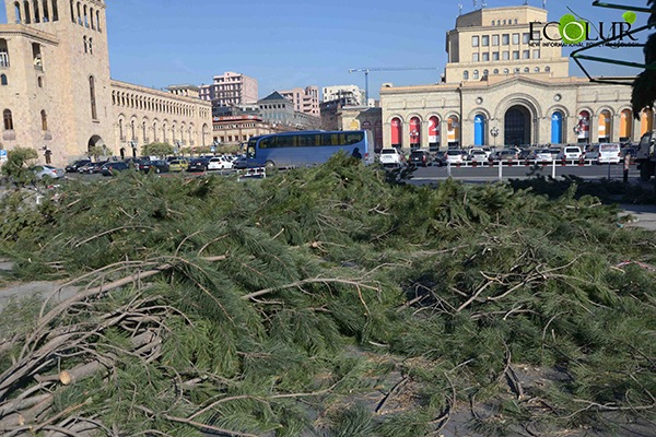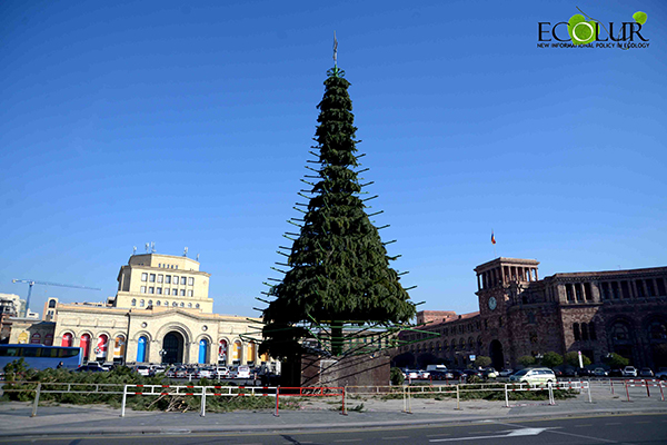 Երևանի Հանրապետության հրապարակում ընթանում են գլխավոր տոնածառի տեղադրման աշխատանքները: Մայրաքաղաքի գլխավոր տոնածառի համար «Հայանտառ» ՊՈԱԿ-ի «Հրազդանի անտառտնտեսություն» մասնաճյուղից տրամադրվել է սոճու 6000 ճյուղ, որոնք առաջացել են սանիտարական էտի արդյունքում: Այս մասին «ԷկոԼուր»-ի հետ զրույցում հայտնեց Երևանի քաղաքապետարանի «Ձևավորում» ՓԲԸ տնօրեն Սարգիս Մեսրոպյանը: