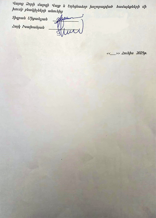 Հանրային լսումն անցկացնող համայնքի ղեկավար պարոն Մաթևոսյանին ներկայացրինք սահմանված կարգով կառուցվող գործարանին դեմ և կողմ բնակիչների ստորագրությունները, որը չընդունվեց համայնքի ղեկավարի կողմից։ Ստիպված դեմ փաստաթղթերը պատշաճ կարգով հանձնել ենք Վայք խոշորացված համայնքի աշխատակազմ։ 2025թ․ մայիսի 16-ին կայացավ Վայք խոշորացված համայնքի ավագանու նիստ։ Ավագին որոշեց «ՋիԷմԷն Գոլդ Մայնինգ» ՍՊ ընկերության կողմից ՀՀ Վայոց ձորի մարզի Վայք համայնքի Զառիթափ բնակավայրի տարածքում հանքաքարի և/կամ հանքանյութի և/կամ խտանյութի վերամշակման /կորզման/ գործարան կառուցելու հարցը քննարկել հաջորդ ավագանու նիստին։ 2025թ. հունիսի 4-ին կայացած ավագանու նիստին քննարկվեց «ՋիԷմէն Գոլդ Մայնինգ» ՍՊ ընկերության կողմից ՀՀ Վայոց ձորի մարզի Վայք համայնքի Զառիթափ բնակավայրի տարածքում հանքաքարի և/կամ հանքանյութի և/կամ խտանյութի վերամշակման /կորզման/ գործարան կառուցելու թույլտվություն տրամադրելու հարցը, սակայն չեն հրապարակվել հանրային լսման ժամանակ Վայք խոշորացված համայնքի աշխատակազմ պատշաճ հանձնված փաստաթղթերը: Ավագանու անդամները տեղեկացված չեն եղել վերը նշված փաստաթղթերի հանձնման մասին, որտեղ առկա է եղել գործարանի կառուցմանը դեմ 75 ստորագրություն, որոնք չեն ներառվել ավագանու որոշման կից փաստաթղթերի ցանկում, ներառվել են 36 մասնակիցների ստորագրություններ, որտեղ հնարավոր չէ տեղեկանալ կողմ կամ դեմ մասնակիցների վերաբերյալ: 75 դեմ ստորագրությունների պայմաններում ավագանին պետք է գրավոր հիմնավորեր գործարանի կառուցման դրական եզրակացություն տալու վերաբերյալ, որը չի կատարվել։ Ավագանին տվել է չհիմնավորված նախնական համաձայնություն «ՋիԷմԷն Գոլդ Մայնինգ» ՍՊ ընկերության կողմից ներկայացված ՀՀ Վայոց ձորի մարզի Վայք համայնքի Զառիթափ բնակավայրի վարչական տարածքում նախատեսվող հանքաքարի և կամ հանքանյութի և/կամ խտանյութի վերամշակման /կորզման/ գործարանի կառուցման համար։