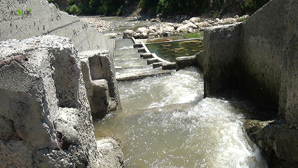 • Առկա է աղբորսիչ ցանց՝ 10.5 մ երկարությամբ, որի ճաղերի միջև հեռավորությունը 3 սմ է: Ճաղերի միջև այդքան ճեղք ունեցող ցանցը չի կարող արգելել մինչև 15 սմ երկարությամբ ձկների հայտնվելը ցանցի մյուս կողմում: