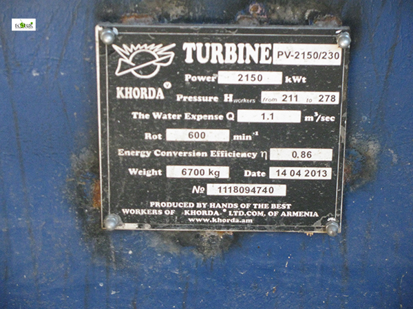 - ՓՀԷԿ-ի շենքում տեղադրված է «Խորդա» մակնիշի տեղական արտադրության 5 հիդրոագրեգատ, որոնցից 1-ը 2150 կվտ դրվածքային հզորության էր, 2-ը, 3-ը և 4-ը` 1700 կվտ, իսկ 5-ը` 3150 կվտ դրվածքային հզորությամբ/ գումարային` 10400 կվտ դրվածքային հզորություն/: Դիտարկման պահին աշխատում էր մի ագրեգատը, որը 460 լ/վրկ ջրաքանակով ապահովում էր 1250 կվտ դրվածքային հզորություն: Ագրեգատները չունեն ավտոմատ կառավարման համակարգ: Նախագծով նախատեսված է եղել 4 ագրեգատ: Աշխատակցի համոզմամբ՝ ՓՀԷԿ-ի աշխատանքը ոռոգման սեզոնին /ապրիլ-սեպտեմբեր ամիսներ/ ամբողջովին կանգնում է, քանի որ ՓՀԷԿ-ի համար օգտագործվող գետահատվածում իրականացվում է Վերին Գետաշեն, Մադինա, Ներքին Գետաշեն և Գեղհովիտ համայնքների ոռոգում, ինչը վկայում է 4 ոռոգման խողովակաշարերի առկայությունը: ՓՀԷԿ-ի համար որպես առավելագույն հաշվարկային ելք սահմանված 5.0 խմ/վրկ ջրաքանակը, համաձայն ՓՀԷԿ-ի աշխատակցի, ՓՀԷԿ-ի կողմից օգտագործվում է ապրիլ-մայիս ամիսներին: