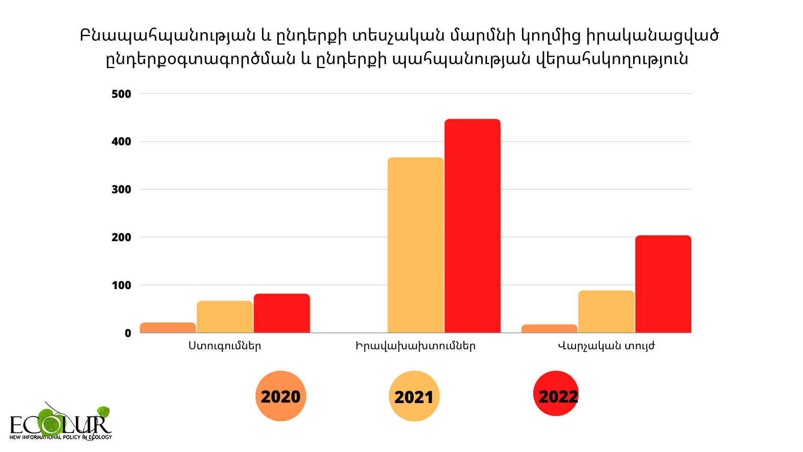 Ավարտված 81 ստուգման արդյունքում հայտնաբերվել է 446 իրավախախտման դեպք (2021թ-366, համեմատական աճ՝ 2021թ-21.8%): Կայացվել է 203 վարչական տույժ նշանակելու մասին որոշում (2021թ-88, 2020թ-17, համեմատական աճ՝ 2021թ-130.7%, 2020թ-1094.1%):