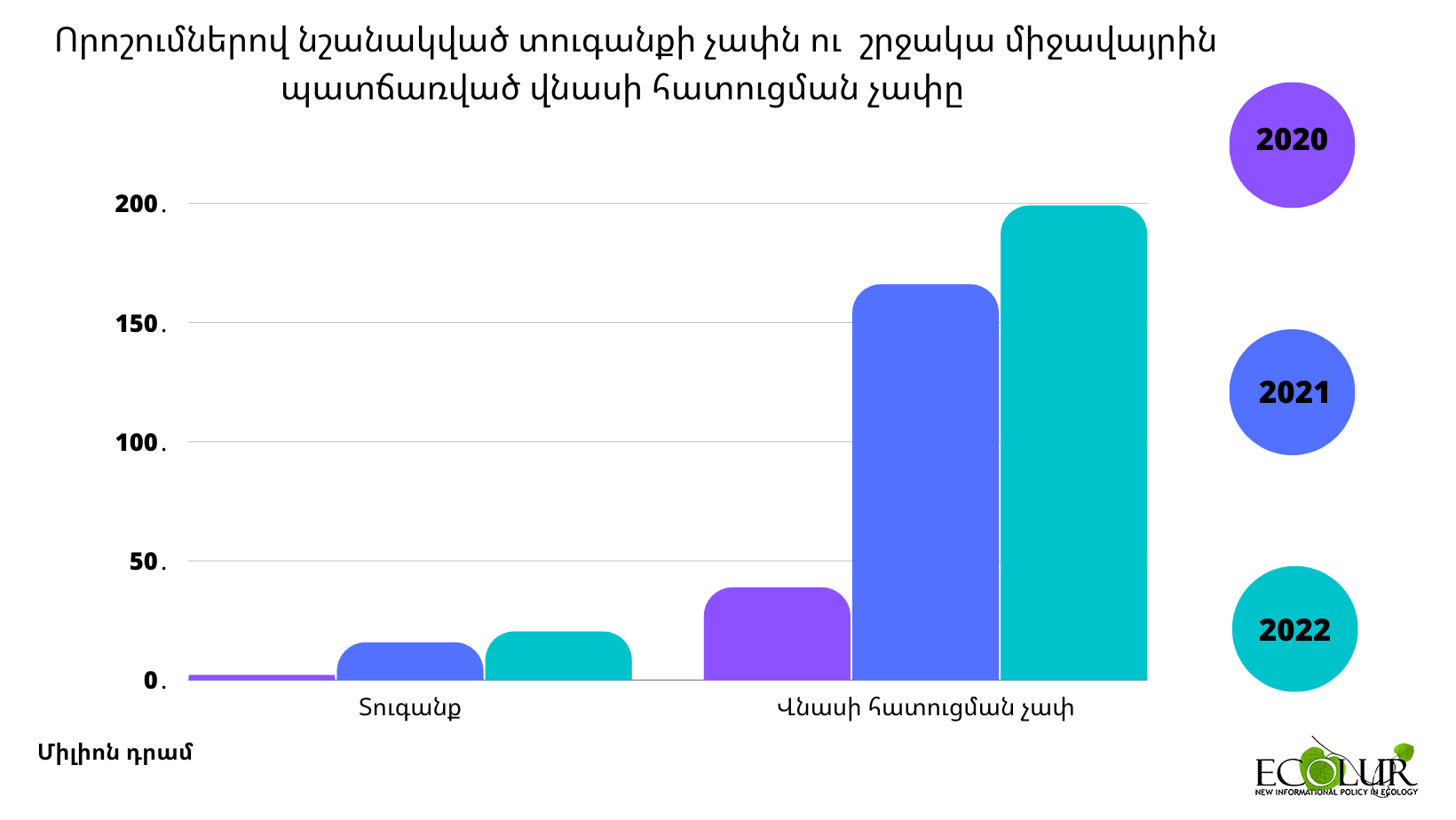 Հաշվարկված շրջակա միջավայրին պատճառված վնասի հատուցման չափը կազմել է՝ 199․278․261 ՀՀ դրամ (2021թ-166․759․721 դրամ, 2020թ-39․722․119 դրամ, համեմատական աճ՝ 2021թ-19․5%, 2020թ-401․7%)։