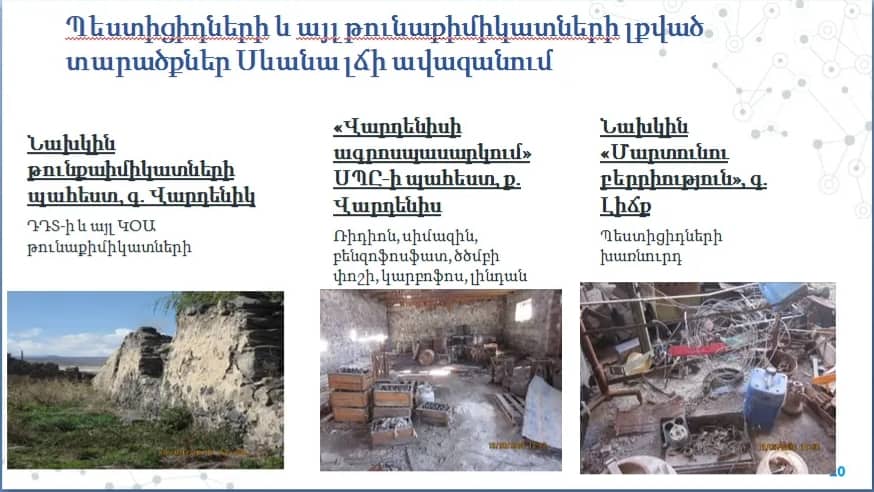 Նա նշեց, որ պեստիցիդների տարածման աղբյուր կարող են լինել նաև Վարդենիկ գյուղում, Վարդենիս քաղաքում և Լիճք գյուղում գտնվող թունաքիմիկատների նախկին պահեստները: