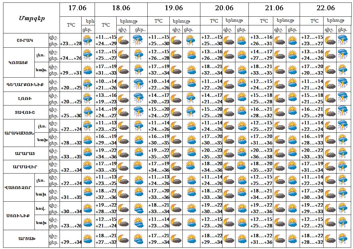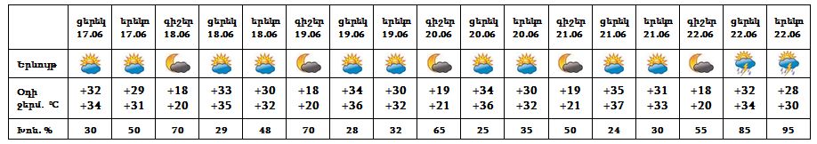 Օդի ջերմաստիճանը հունիսի 17-19-ն աստիճանաբար կբարձրանա 2-4 աստիճանով: