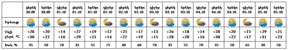 Օդի ջերմաստիճանը հոկտեմբերի 1-2-ն աստիճանաբար կնվազի 2-4 աստիճանով, 3-5-ը նույնքան կբարձրանա: