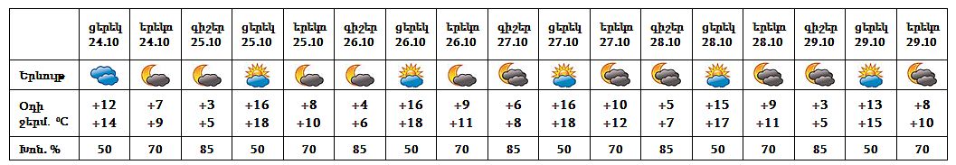 Հոկտեմբերի 24-ի ցերեկն առանձին շրջաններում սպասվում է անձրև, 25-29-ը սպասվում է առանց տեղումների եղանակ: