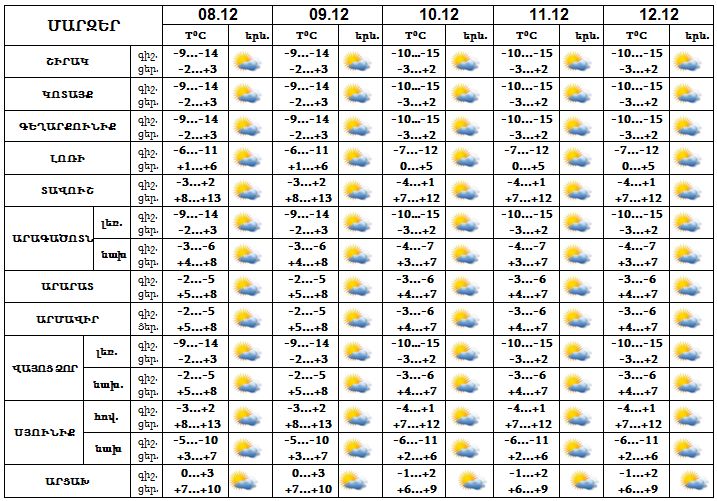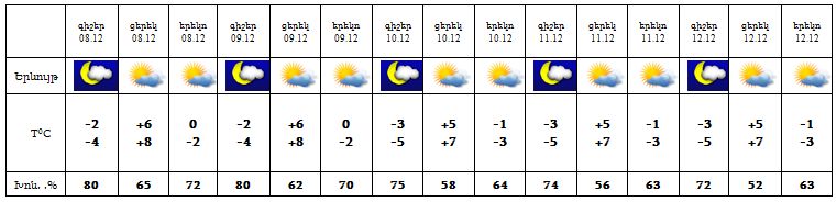 Օդի ջերմաստիճանը 8-ին կբարձրանա 3-4 աստիճանով, այնուհետև էապես չի փոխվի: