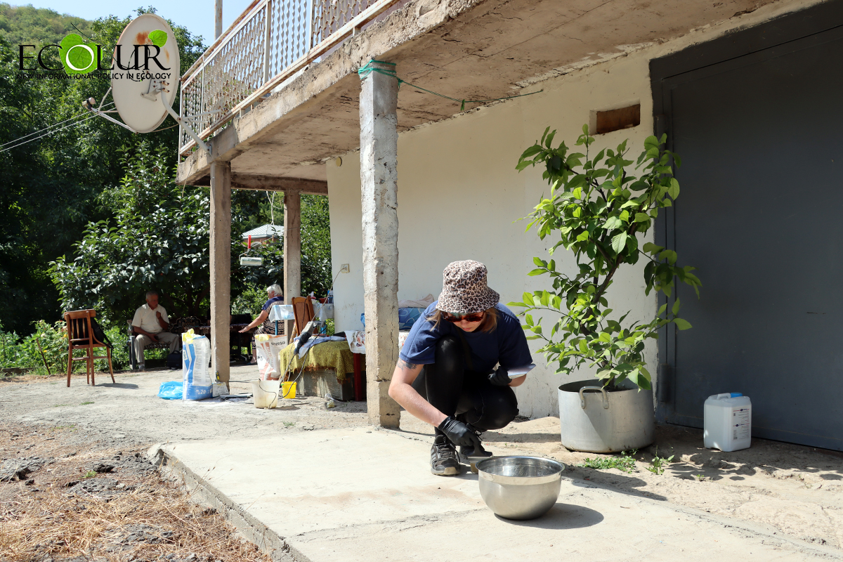 По предложению жителей эксперты «Арники» взяли пробы почвы из приусадебных участков, образцы с территории, прилегающей к хвостохранилищу Гегануш, а также биоматериалы у жителей.
