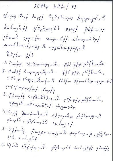 Принятые 25-ого мая 2022г. изменения и дополнения в Кодексе РА “О недрах” ухудшили правовое положение гражданского общества. Новый закон ограничивает конституционные права граждан на проведение акций протеста, на участие в принятии решений, предусмотренных Конституцией РА и Орхусской конвенцией, противоречит действующему Закону РА «Об оценке воздействия и экспертизе на окружающую среду», статья 20, пункт 7.