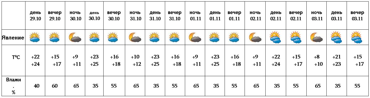 Днем 29-го, с 30-31 октября и с 1-3 ноября ожидается погода без осадков.
