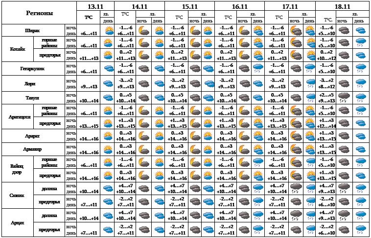 Днем 13-го ноября, с 14-15 ожидается погода без осадков, с 16-18 в отдельных регионах ожидается дождь,