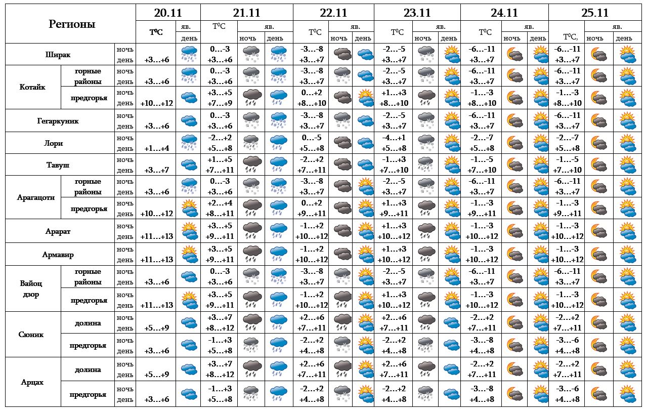 Днем 20-го ноября, 21-го температура воздуха постепенно повысится на 4-6 градуса в регионах Лори, Тавуш, Сюник и в Арцахе.