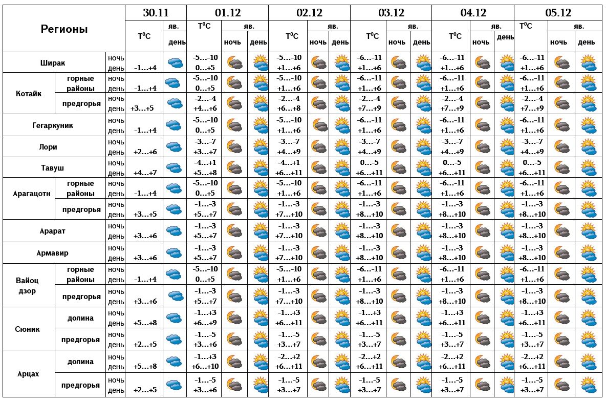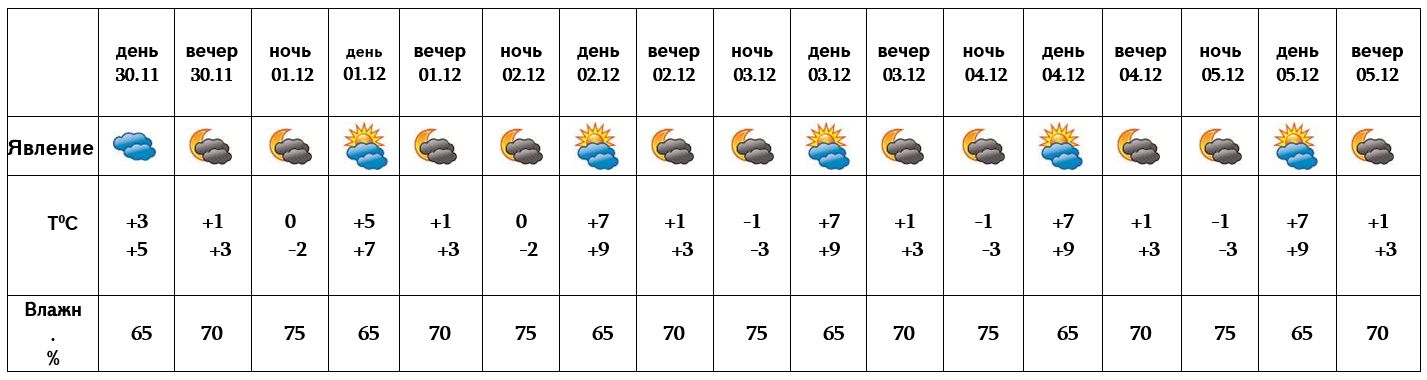 Днем 30-го ноября, с 1-5 декабря ожидается погода без осадков, в отдельных местах ночью и к утру ожидается туман.