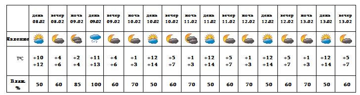 Днем 8-го, 9-го февраля температура воздуха постепенно повысится на 2-4 градуса, с 10-13 существенно не изменится.