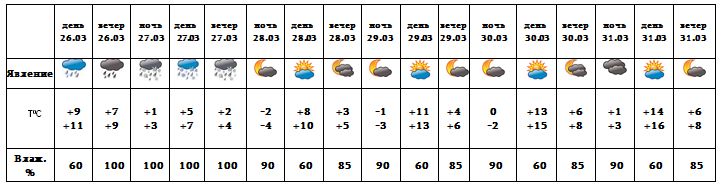 Днем 26-го, с 27-28 марта температура воздуха постепенно понизится на 5-7 градусов.