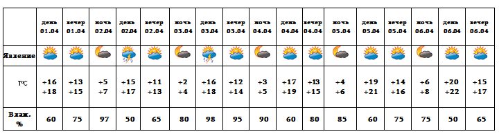 Днем 1-го, с 2-3 апреля в отдельных регионах ожидаются кратковременные осадки, возможна гроза. С 4-6 апреля ожидается погода без осадков.