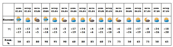 Днем 2-го, 3-го апреля в отдельных регионах ожидаются кратковременные осадки, возможна гроза. С 4-7 апреля ожидается погода без осадков.