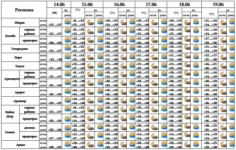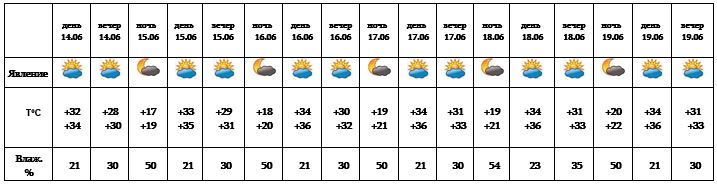 Днем 14-го июня, с 15-19 ожидается погода без осадков.