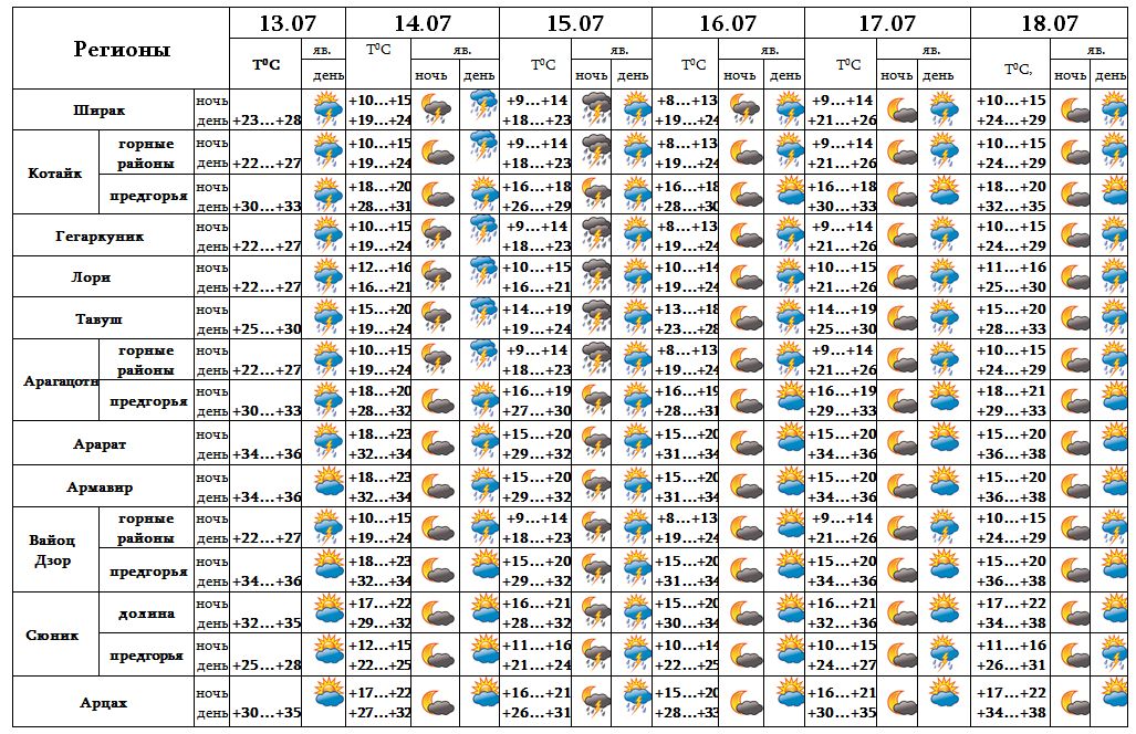13-го в основном после полудня и ночью с 16-18 июля в отдельных регионах, с 14-15 в большинстве регионов ожидается дождь с грозой, в отдельных местах также град.